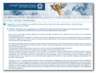 "Proposta Parametri. La proposta CNF, adottata sulla base dell’articolo 13 delle legge 247/2012 e dopo una consultazione con tutta l’Avvocatura, introduce un sistema di “costi prevedibili” e corrisponde ai principi di semplificazione, trasparenza e equità ed è destinata a creare uno strumento di facile e immediata consultazione per gli operatori del diritto e per i cittadini che potranno avere uno strumento di immediato orientamento."